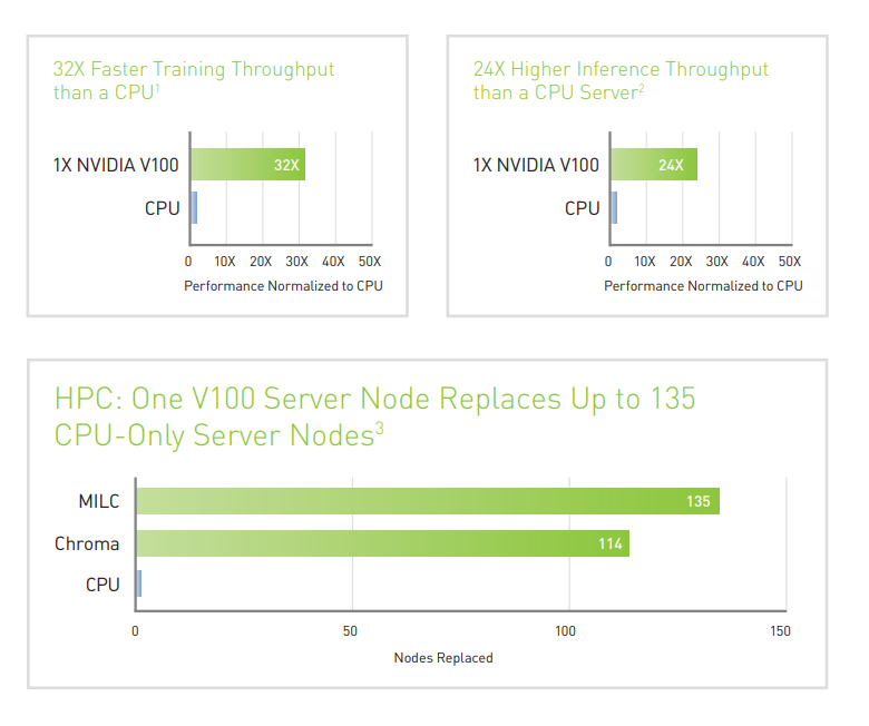 single V100 Tensor Core GPU offers the performance of nearly